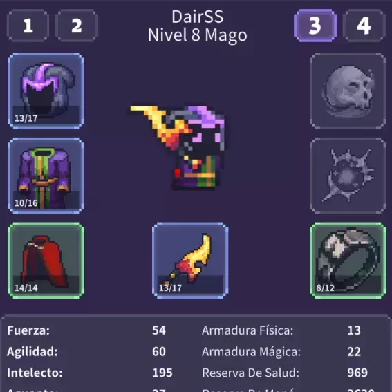 Bastón: Canaliza magia de hielo para ralentizar a los enemigos y controlar el campo de batalla.