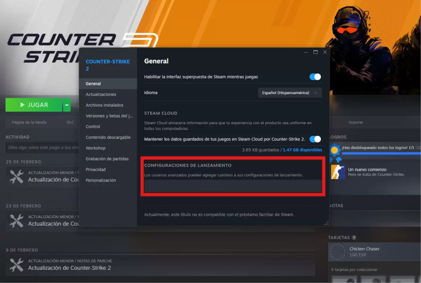 ### Cómo configurar las opciones de lanzamiento en CS2