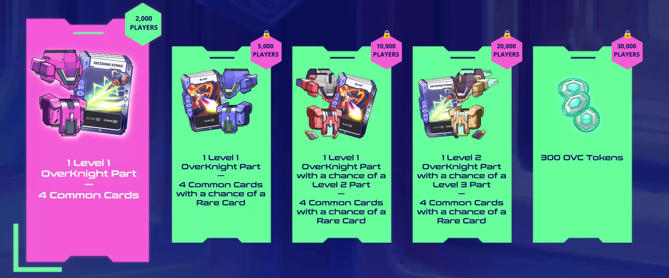 * Tokens OVC. * Cartas y partes Tradeables exclusivas. * Pre-Registrate aquí