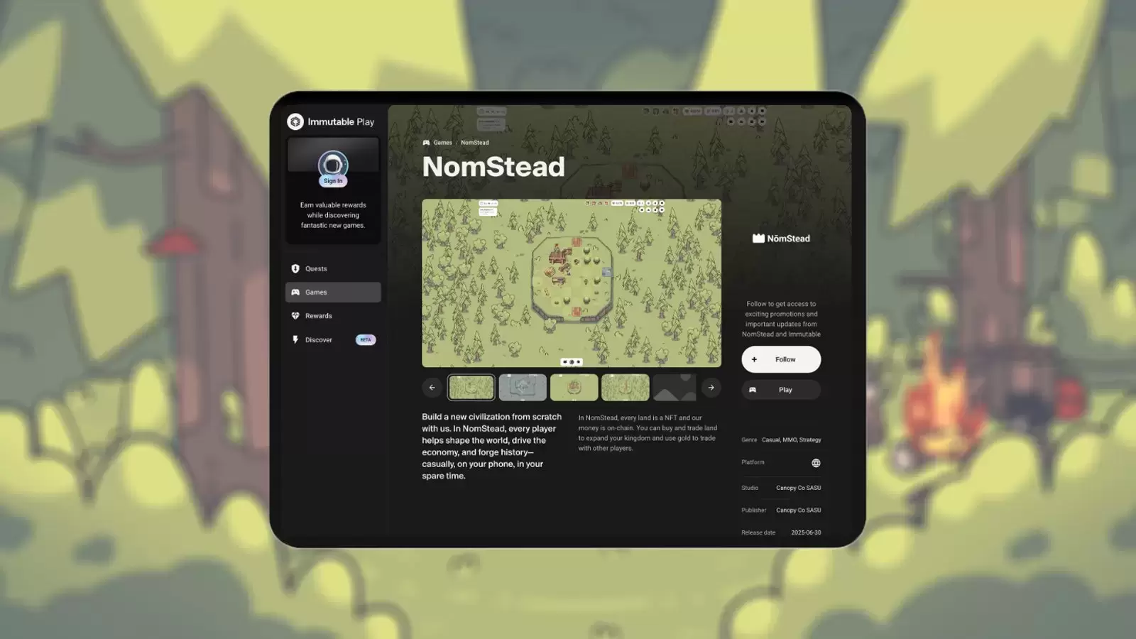 MMORPG sandbox casual, diseñado para navegador y dispositivos móviles. Los jugadores pueden crear sus propios reinos, explorar el mundo, colaborar entre sí y participar en un entorno económico descentralizado.