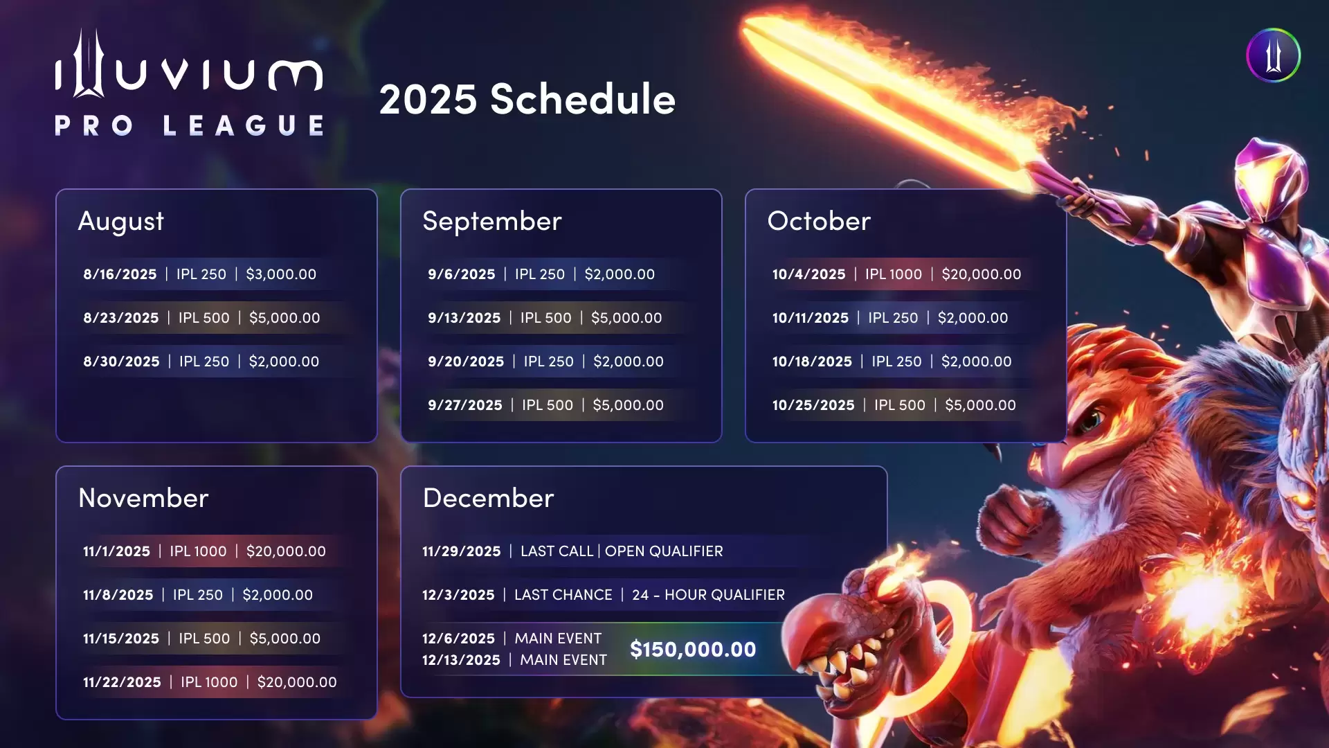 Los jugadores pueden participar en torneos semanales, ganar puntos IPL y clasificar para el Main Event de diciembre, que reparte $150,000 entre los 64 mejores competidores. Con un pozo total de $250,000 para la temporada, la IPL combina estrategia, habilidad y recompensas en tokens $ILV.