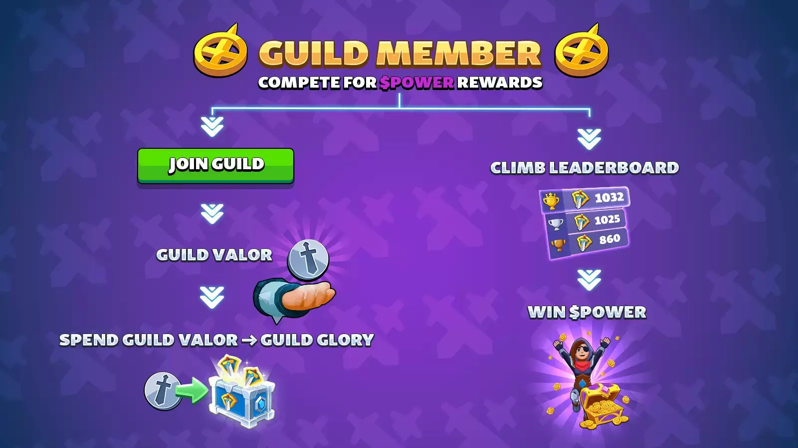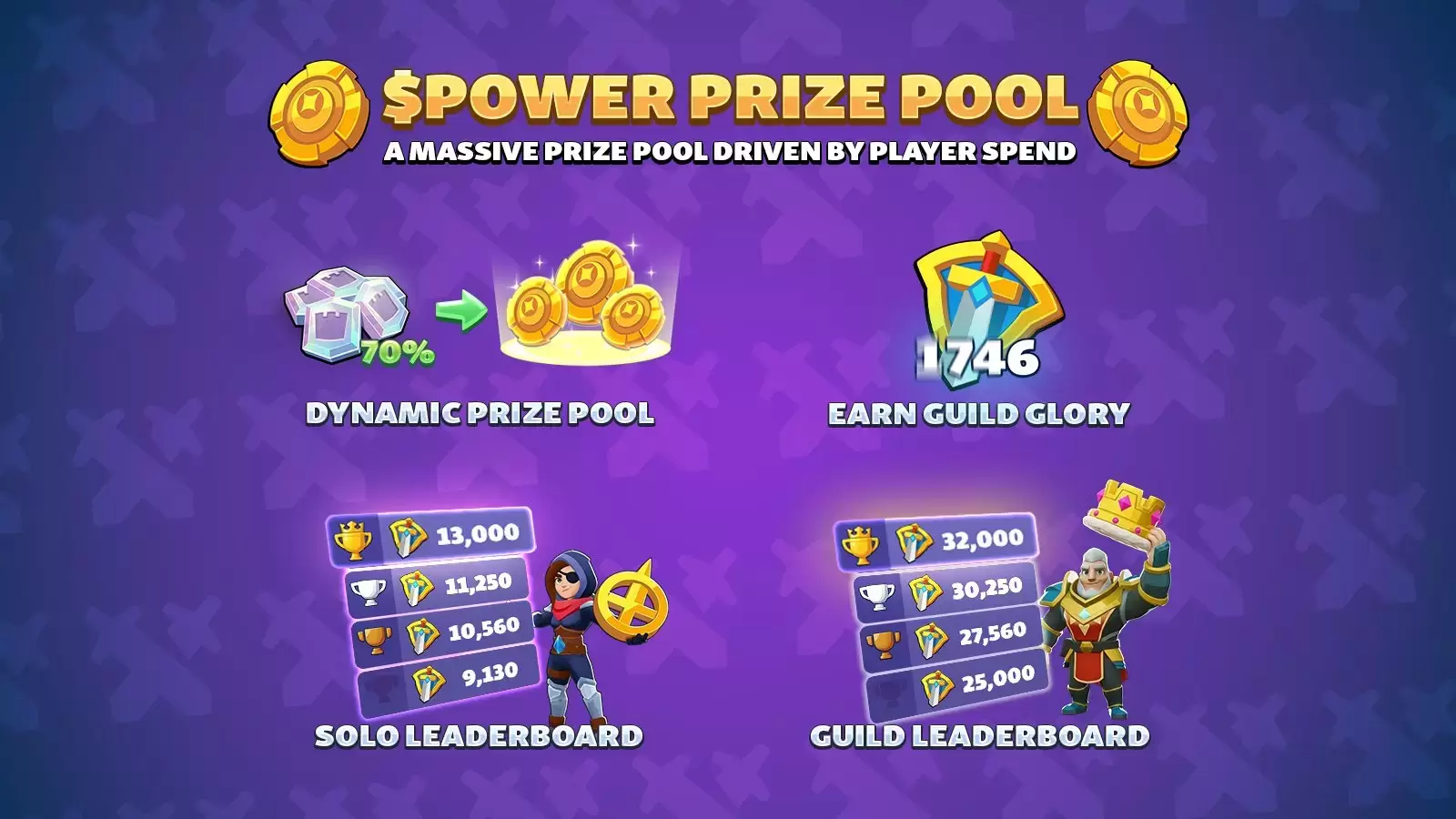 La posición individual en el solo leaderboard determina qué porcentaje del pozo final de $POWER recibe cada jugador. A su vez, el Glory individual también suma al puntaje total del Guild, que define sus recompensas colectivas.