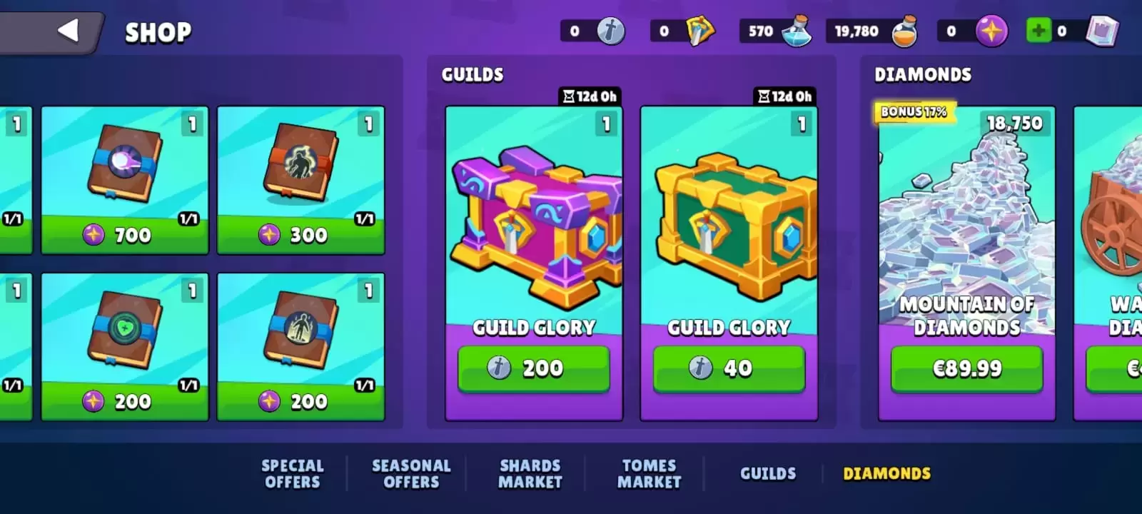 También existen VIP Bounties, que utilizan fragmentos premium disponibles en el Webshop. Aunque las recompensas de Bounties escalan con el tiempo, el método principal para acumular Glory sigue siendo el uso de Guild Valor y los cofres.