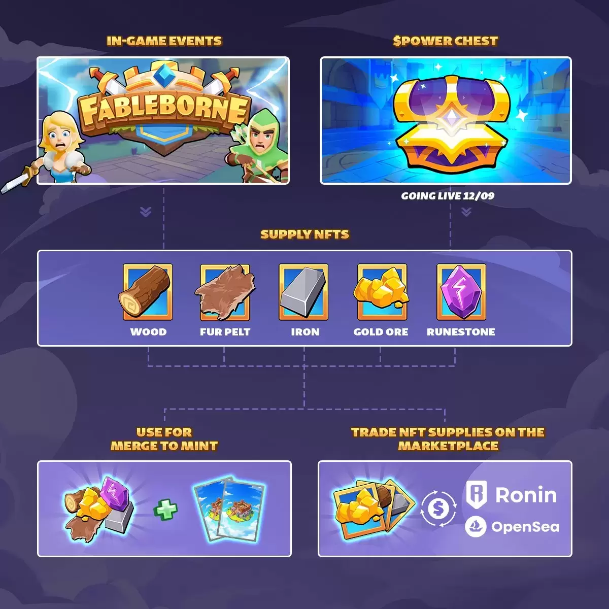 Los Fableborne Supplies NFTs son un recurso clave dentro del sistema de Kingdom Conquest. Se obtienen exclusivamente a través de eventos, Power Chests o el mercado NFT.