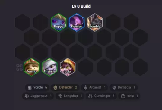 La composición se basa en una salida temprana de Yordles y objetos de Poder de Habilidad (AP). El jugador debe transicionar a través de Yordles y posteriormente buscar una buena front lane con Dr. Mundo, Wukong, Taric para finalmente desbloquear a Sett. El núcleo medular de la sinergia en juego temprano lo aporta Kennen, quien se habilita al subir a los Yordles a dos estrellas.