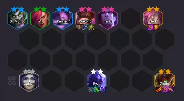 * Juego Temprano: Se utiliza a Viego (dos estrellas) como portador de objetos de daño para empezar a activar la sinergia de Islas de las Sombras junto a Yorick.