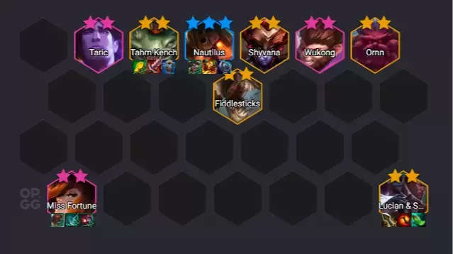 * Línea Frontal: Si no se logra sacar a Nautilus al nivel 3, los objetos de tanque deben ir para Taric. Wukong y Volibear completan la defensa como matones.