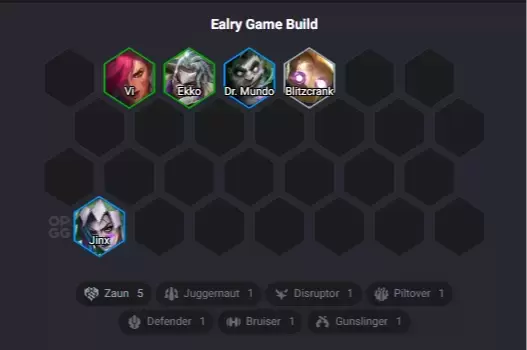 Esta composición aprovecha la mejora reciente en los Zaun, por lo que el objetivo es jugar con cinco unidades de esta sinergia. No se necesita tener toda la mesa al nivel 3 para estabilizarse; basta con tener las unidades a 2 estrellas en el juego medio para empezar a ganar. La estrategia principal consiste en llegar a nivel 6 y realizar una búsqueda intensiva (reroll) para conseguir a Ekko, Neeko y Vi al nivel 3.