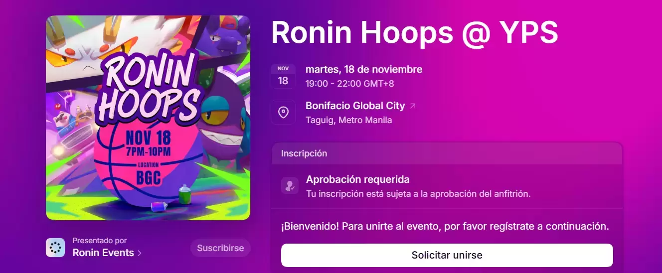 La participación en Ronin Hoops Night requiere registro previo a través del enlace oficial de RSVP. La organización aclara que: