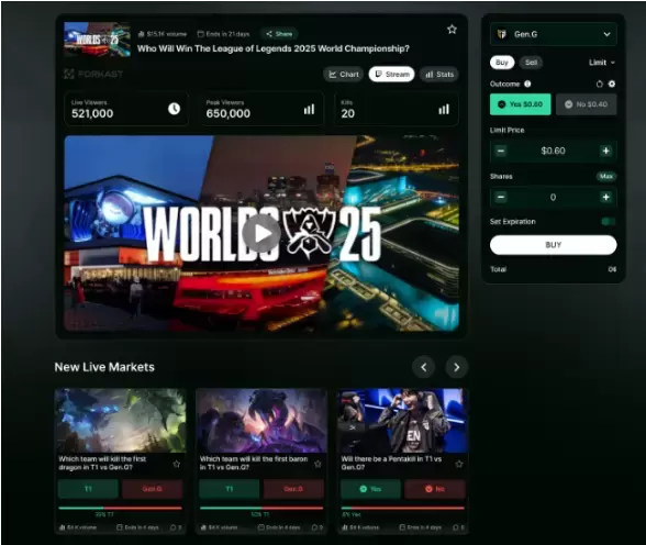 “Forkast está llevando los mercados de predicción al corazón del entretenimiento en vivo”, comentó Ethan Sy, miembro de Arbitrum Gaming Ventures.