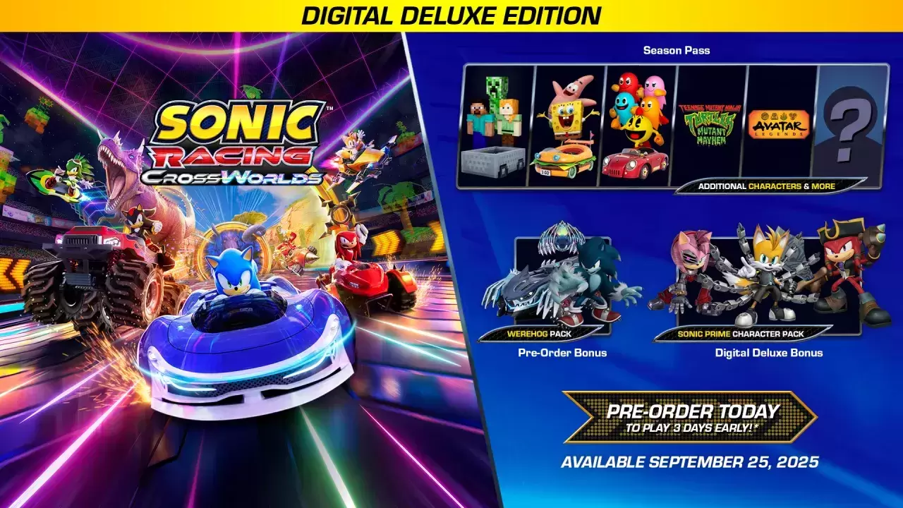 Sonic Racing: CrossWorlds se lanza el 25 de septiembre de 2025, buscando competir con Mario Kart World con portales interdimensionales y crossovers como Minecraft y Hatsune Miku.