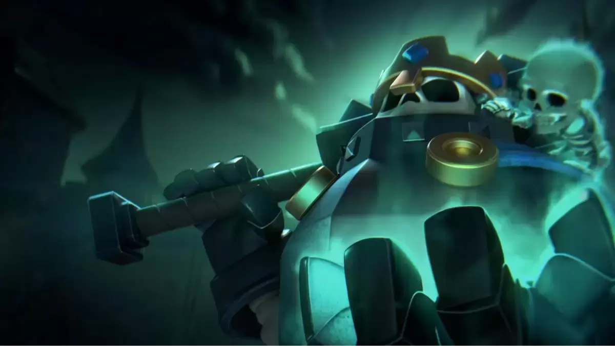El Rey Esqueleto acumula almas durante la defensa y luego puede convertir esa ventaja en contraataque. El Verdugo Evo, combinado con Tornado, sirve para agrupar tropas y limpiar pushes enteros. Veneno completa la presión sobre defensores y zonas clave.