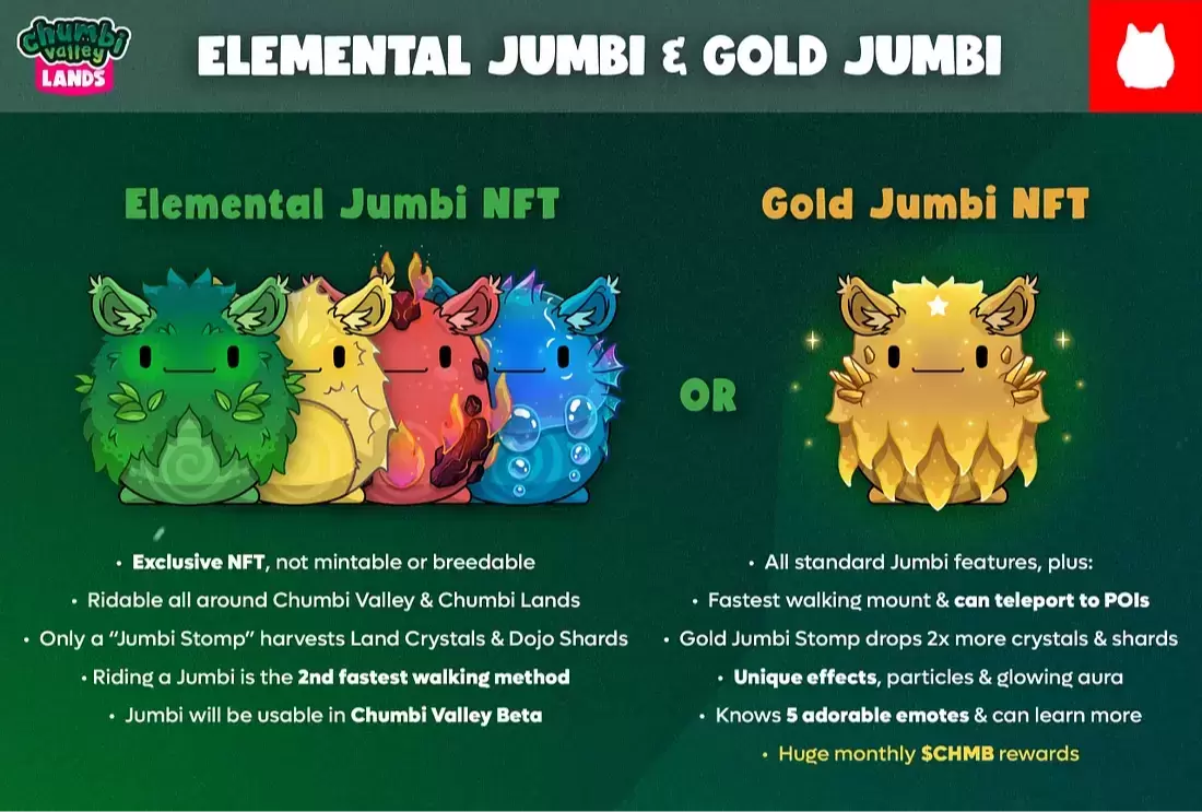 Los NFTs dorados son versiones raras con beneficios adicionales, incluyendo acceso al Chumbi Vault para reclamar recompensas mensuales.