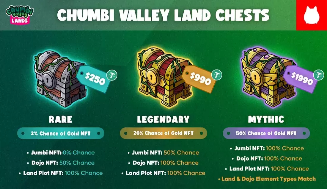 Los fondos recaudados ayudarán a financiar el desarrollo y la promoción de la beta de Chumbi Valley, permitiendo alcanzar el nivel de calidad y características necesarias para su éxito. Sin embargo, eso no implica que no brinde recompensas. Aquí se presenta el contenido de los Cofres de Tierra.