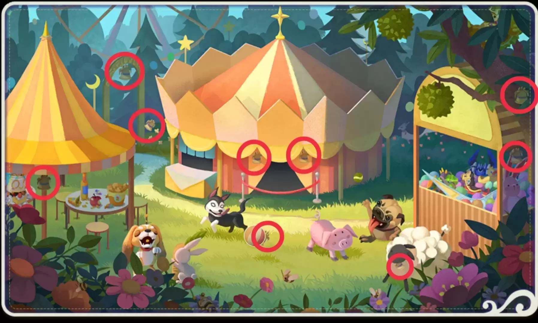 Cambiamos de escenario a un carnaval lleno de distracciones visuales. Encuentra a todos los campeones antes de que el cronómetro te detenga.