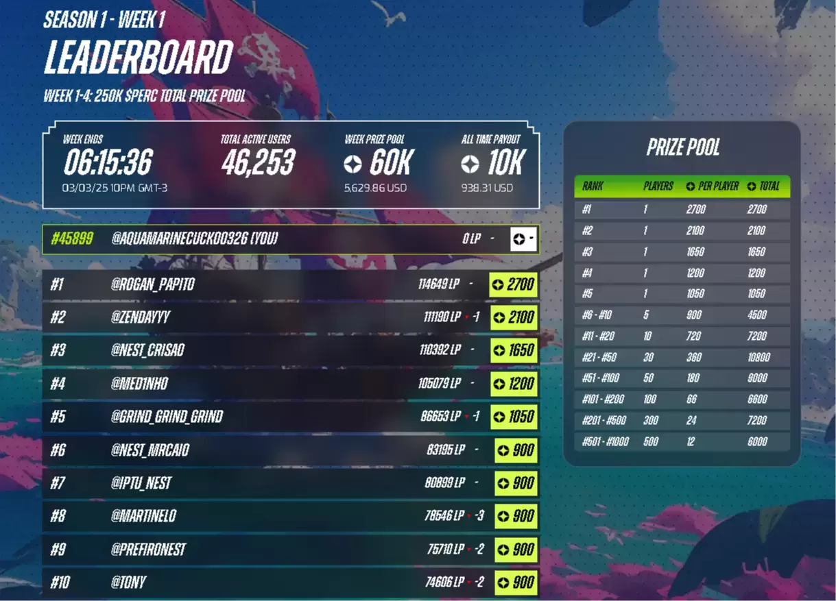 ### 🕹️ Tabla de Clasificación y Sistema de LP - Los Leaderboard Points (LP) determinan la posición en la tabla. - El LP se gana completando misiones, pero también puede ser robado o reducido por otros jugadores. - En caso de empate, gana quien obtuvo LP primero. - Los jugadores de mayor rango son más propensos a ser atacados con recompensas de sabotaje.