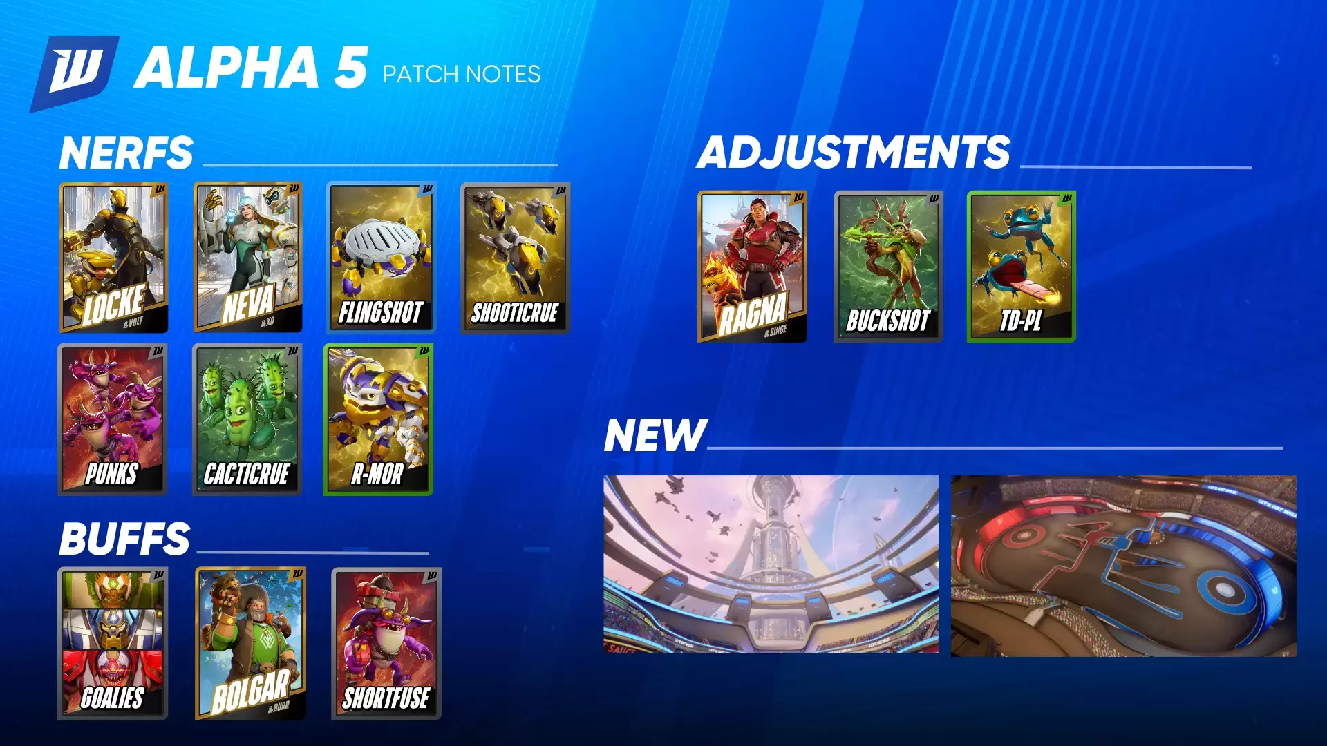Cada campeón recibió ajustes que afectan directamente su estilo de juego. Locke, por ejemplo, ahora tiene un disparo más rápido pero con menos daño, y una habilidad especial más eficiente aunque con menor alcance. Ragna, Neva y Bolgar también fueron revisados, mejorando animaciones, tiempos de enfriamiento y la lógica detrás de sus habilidades transformables.