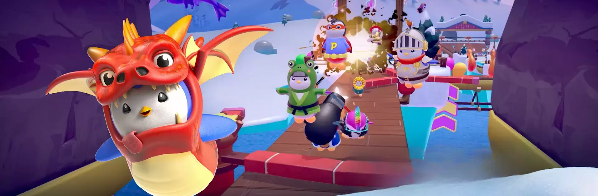 * Batallas rápidas de hasta 20 jugadores, con power-ups y personalización de pingüinos.