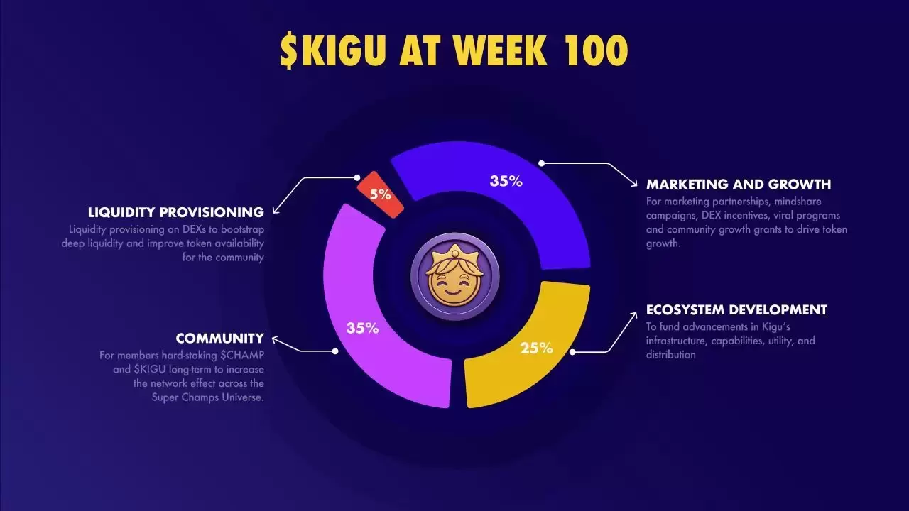 $KIGU complementa a $CHAMP. Mientras $CHAMP se mantiene como moneda interna para compras, recompensas y operaciones, $KIGU se orienta a dinamizar la participación alrededor de Kigu y canalizar incentivos específicos.