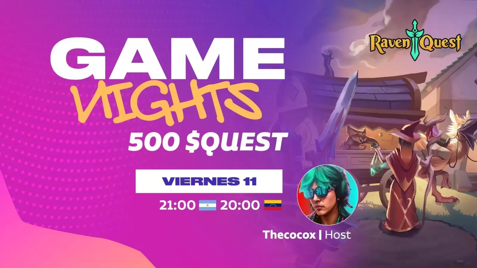 La aventura vuelve a OLA GG este viernes con una nueva Game Night de RavenQuest, el MMORPG Web3 donde estrategia, combate y comunidad se combinan en un mismo mundo. Y sí… ¡hay 500 $QUEST en premios para los más activos!